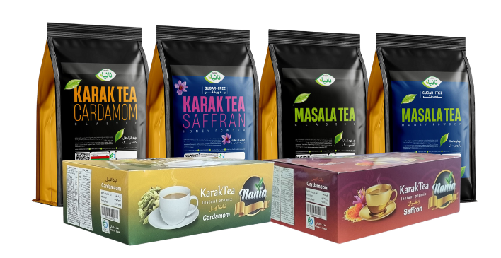 پودرهای نوشیدنی نانیا مخصوص کسانی است که دوست دارند عطر و طعم اصیل چای کرک و ماسالا را در کنار راحتی آمادهسازی تجربه کنند. این محصولات در دو نوع کلاسیک و بدون شکر (حاوی پودر عسل) تولید میشوند تا هر سلیقهای پاسخ داده شود.